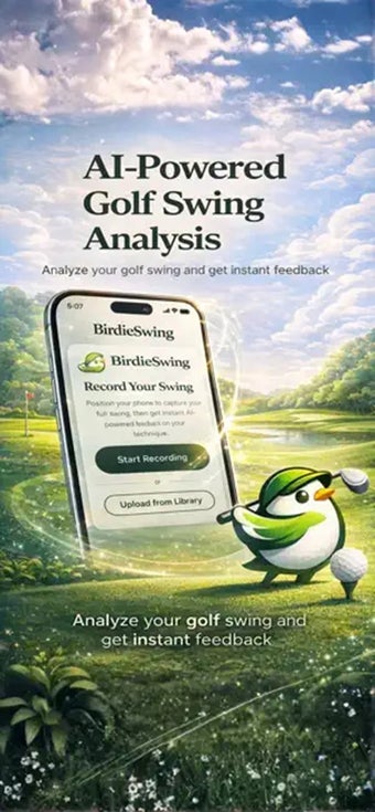 BirdieSwingAI est une application de sport gratuite conçue pour aider les golfeurs à améliorer leur swing. Il suffit de télécharger une vidéo enregistrée de votre swing de golf, et l'application fournit une analyse instantanée alimentée par l'IA de celui-ci — fournissant des retours sur votre prise, votre posture, votre backswing, votre downswing et votre suivi.